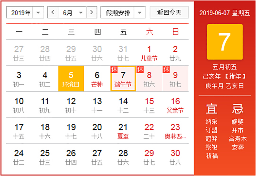 In order to let everyone have a happy and peaceful Dragon Boat Festival, according to the "notice of the general office of the state council on the arrangement of some holidays in 2019", combined with the actual situation of the company and work arrangements, the company will have the following holiday schedule for Dragon Boat Festival: June 7th, 2019 (Friday) -9th, 2019 (Sunday) holiday, a total of three days.