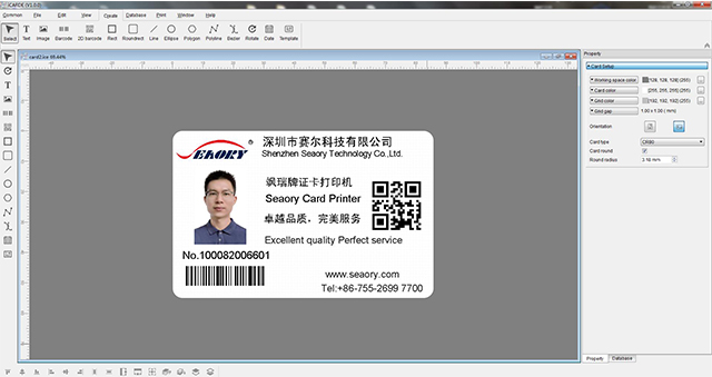 This software is our own brand of SEAORY card printers for which tailored to create a card printing software. Its main function is to carry out the design and output diverse ID card printing layouts, with a rich variety of graphics, bar codes, two-dimensional codes and other design elements. It supports various data source formats and quickly realizes batch printing of different elements for all kinds of ID cards, with real-time monitoring on the data content during printing and output.